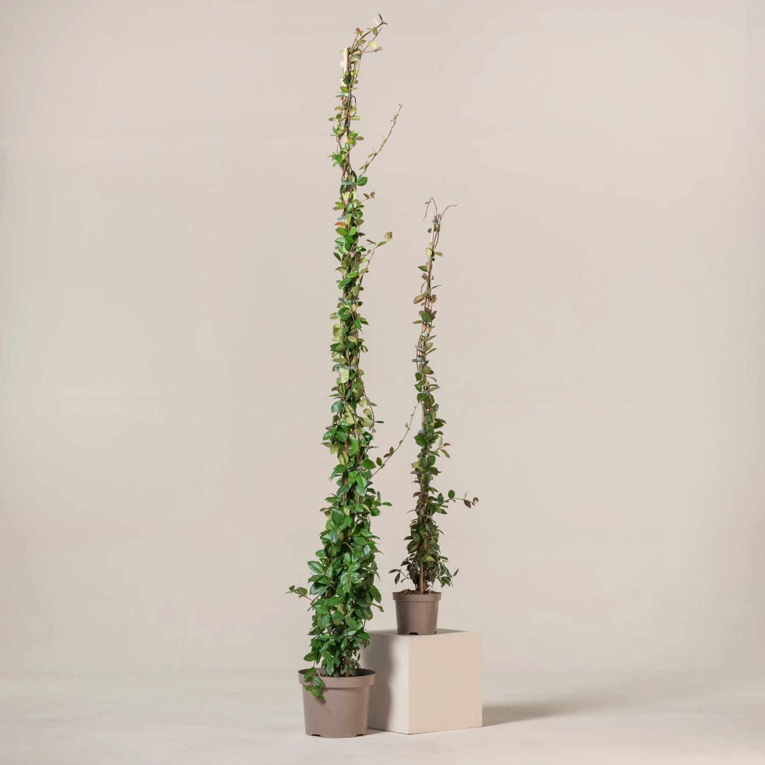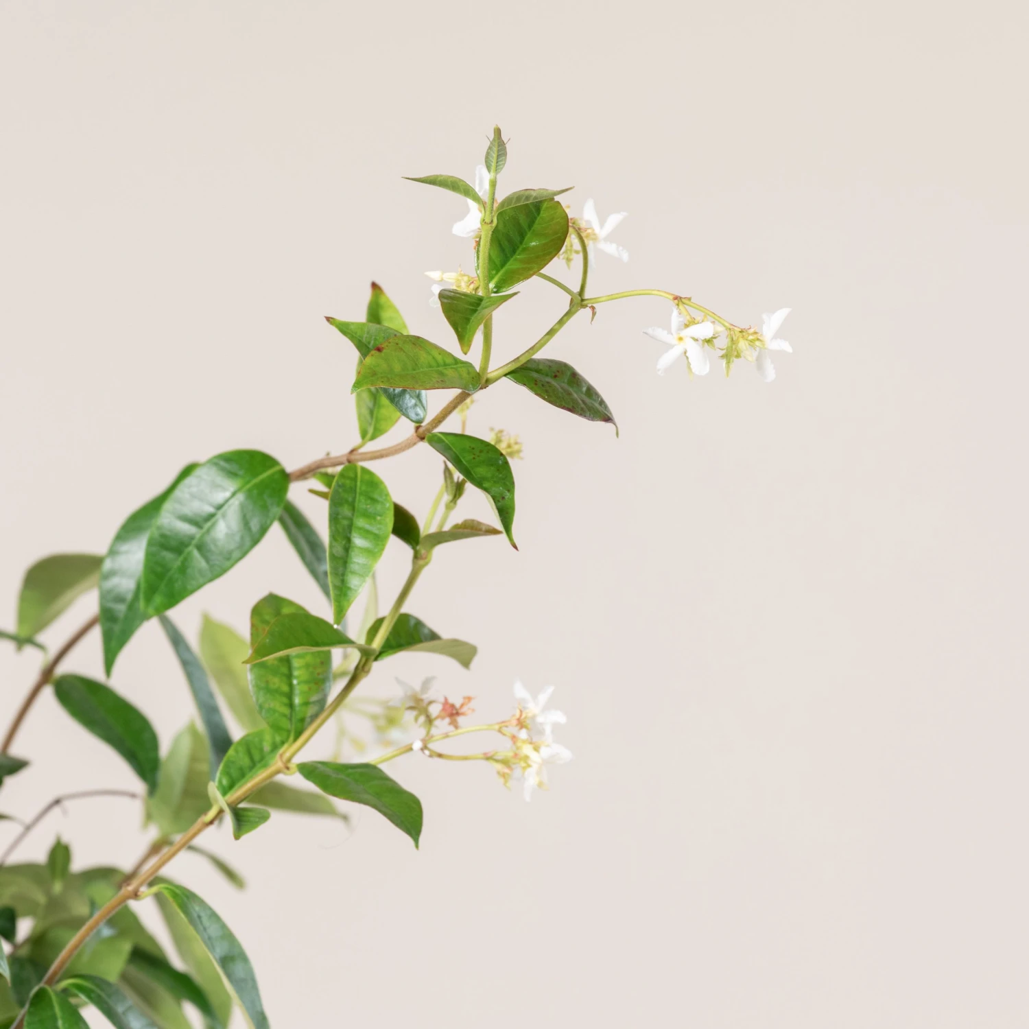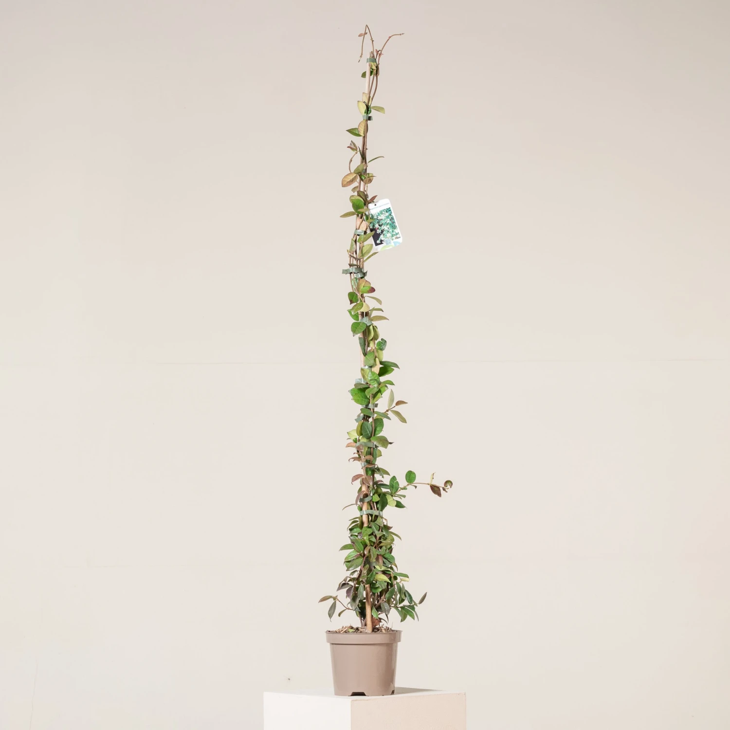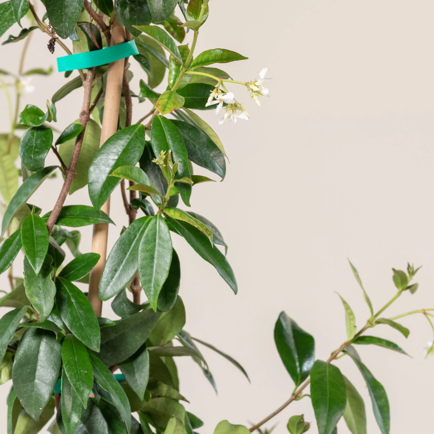 Our star climber, the Star Jasmine is a twining evergreen which bears glossy green foliage, sometimes tinged purple in cold weather.